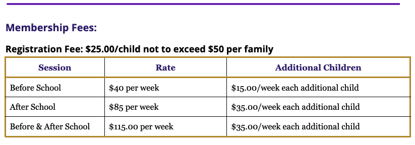 $25.00 Registration Fee (per child not to exceed $50 per family)