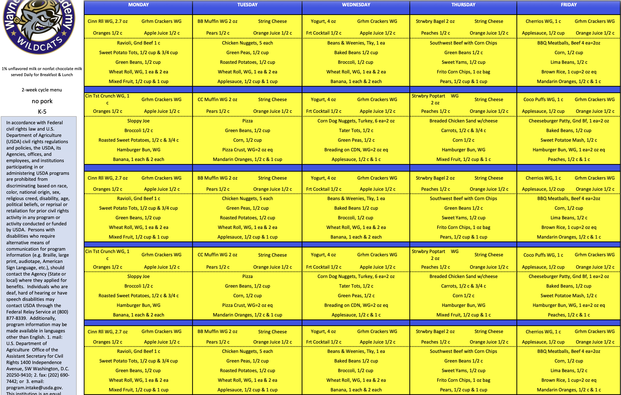 Every WSAWildcat can participate for free breakfast & lunch ~ we only ask that you help us determine participating numbers by using the order form below.